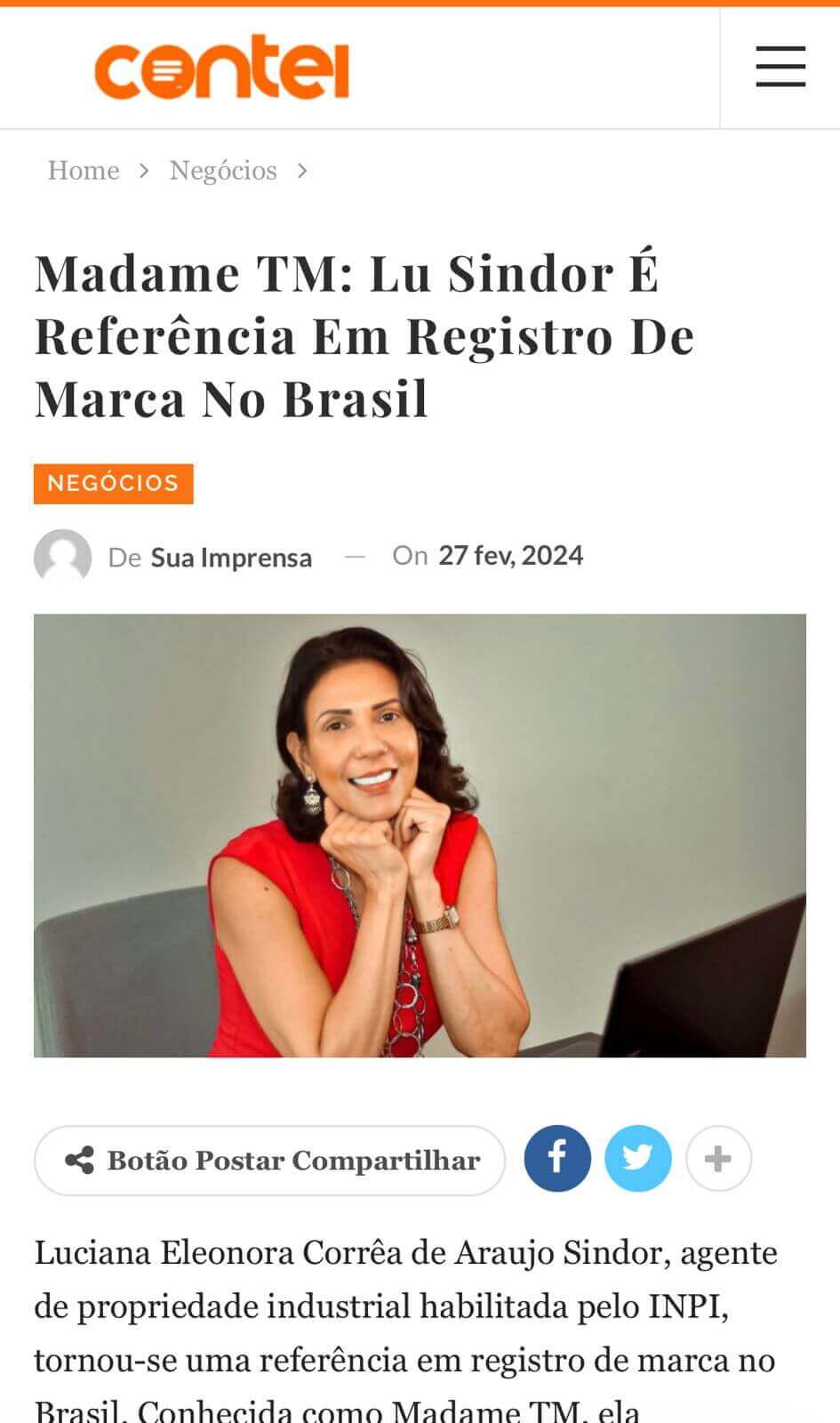 Publicado em priscila marques06/06/2025Trustindex verifica se a fonte original da avaliação é Google. A mentoria com a Lu foi essencial para o registro da minha marca. Ela explica com clareza, orienta cada etapa e ainda faz o acompanhamento do processo, o que me trouxe muita segurança. Recomendo demais para quem quer proteger sua marca com tranquilidade!Publicado em Aline Silva06/06/2025Trustindex verifica se a fonte original da avaliação é Google. Indico o trabalho da Lu com toda a certeza! Ela me acompanhou do início ao fim do processo de registro da minha marca. Profissional super competente, direta e esclarecedora. Fiquei super confiante com o apoio dela❤️Publicado em Maria Eduarda Trigueiros29/05/2025Trustindex verifica se a fonte original da avaliação é Google. A Lu da Madame TM é uma profissional de excelência! Se você pensa em fazer registro da sua marca, pode fazer com ela, sem medo! Sempre solicita e disponível! Recomendo demais!!Publicado em Transformando oMundo27/05/2025Trustindex verifica se a fonte original da avaliação é Google. Foi muito satisfatório, atendimento e atenção nota mil. Tá de parabéns.Publicado em Rosele Brum Fernandes22/05/2025Trustindex verifica se a fonte original da avaliação é Google. Só gratidão pelo atendimento impecável! Do início ao fim, fui super bem atendida, com um acompanhamento incrível e toda a paciência para tirar minhas dúvidas. Registro da marca feito com muito profissionalismo e cuidado. Super recomendo!Publicado em Kelvyn Tomaz16/05/2025Trustindex verifica se a fonte original da avaliação é Google. Atendimento excelente, explica com detalhes e tem toda a atenção com a sua marca! Recomendo!Publicado em Candida Lopes15/05/2025Trustindex verifica se a fonte original da avaliação é Google. Nossa eu estou muito feliz com a minha decisão de escolher Lu para me direcionar nesse processo de registro da minha marca! Ela é segura inteligente direta e transparente, foi um excelente trabalho.